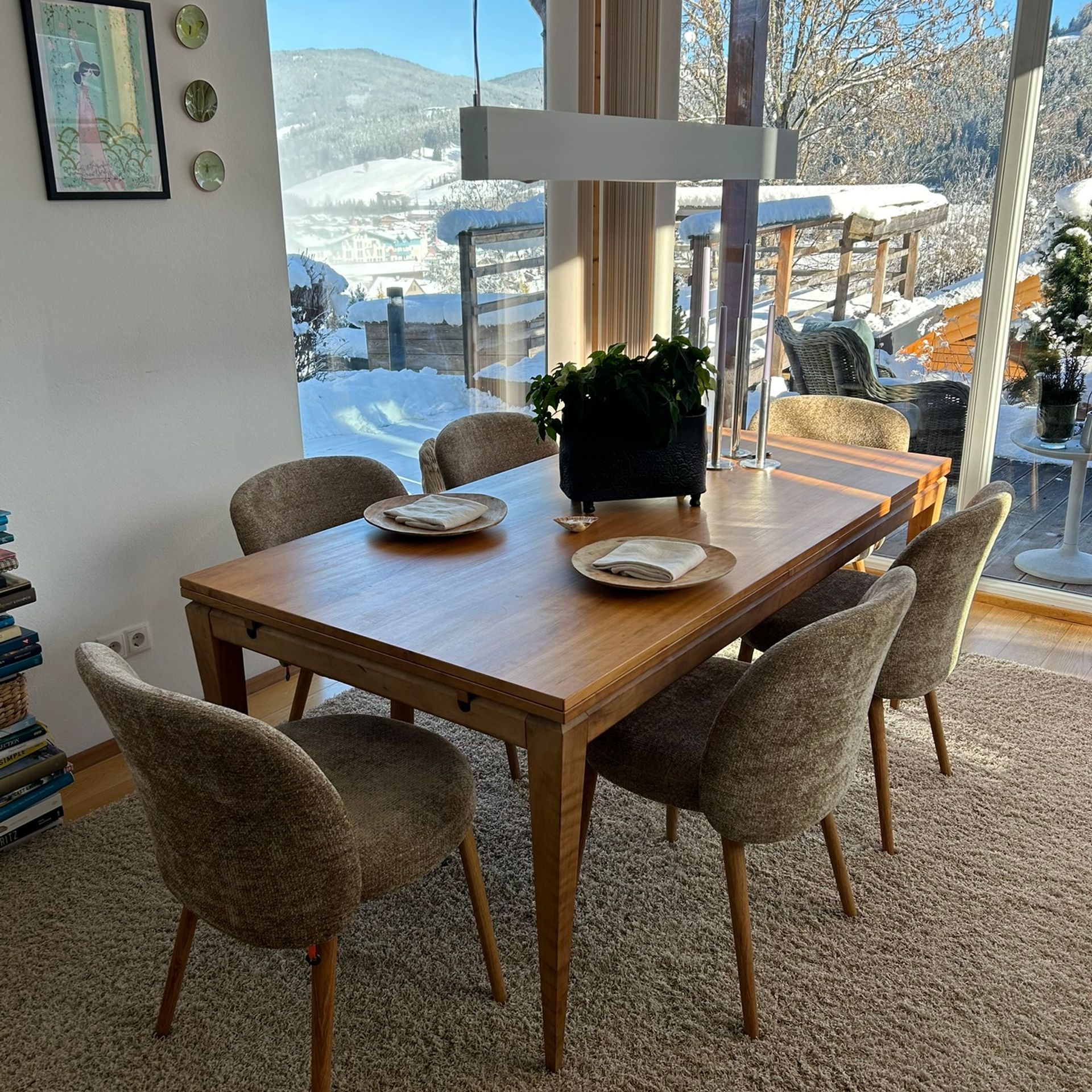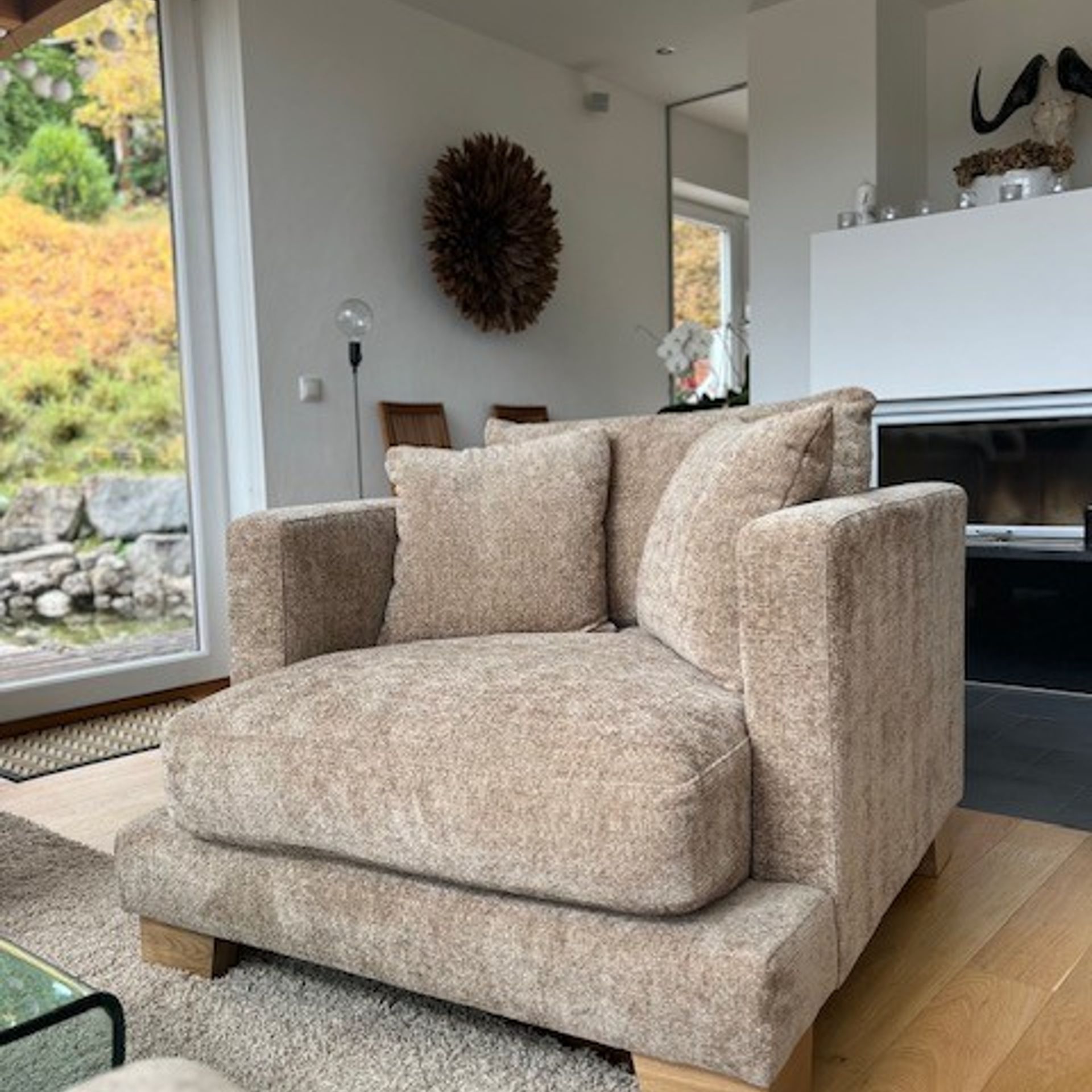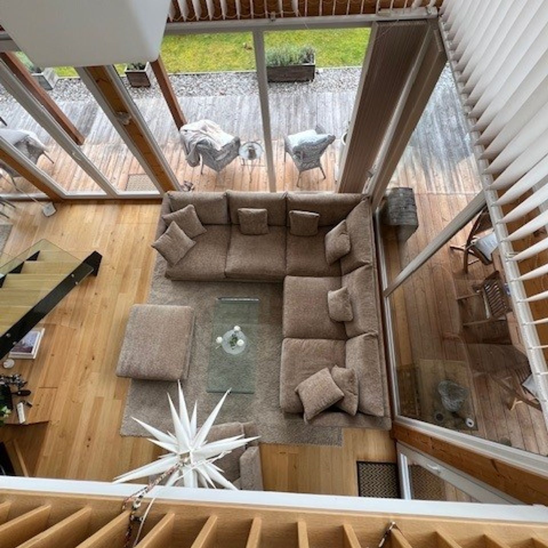 In diesem tollen Zuhause durften wir eine Einrichtung ergänzen, die Wärme, Eleganz und Geborgenheit perfekt vereint. Die großzügige Couchlandschaft im Teddy-Brown-Stoff lädt dazu ein, den Winter von seiner schönsten Seite zu genießen – weich, behaglich und mit ganz viel Platz fürs gemütliche Plaudern und Kuscheln. Ergänzt durch den passenden Hocker und den gemütlichen Sessel entsteht ein harmonisches Gesamtbild, das zum Verweilen einlädt.