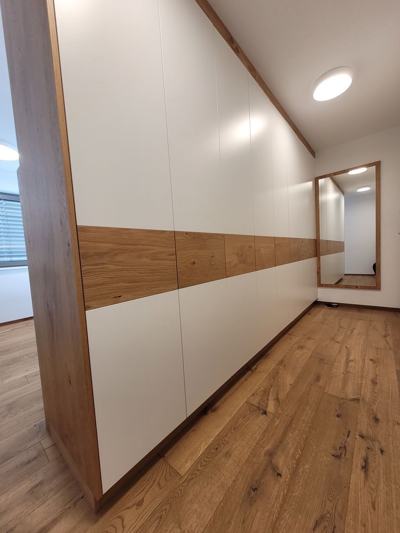 Durch den Vorraum inklusive Schrankverbau kommen wir weiter in das neue Schlafzimmer – stilvoll, gemütlich und perfekt für entspannte Nächte!