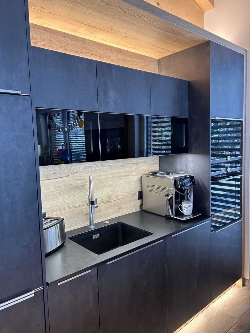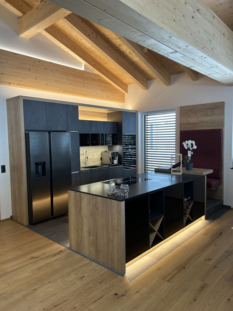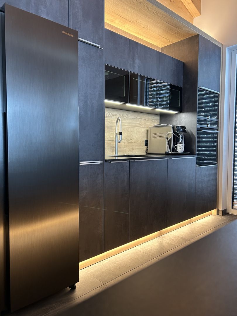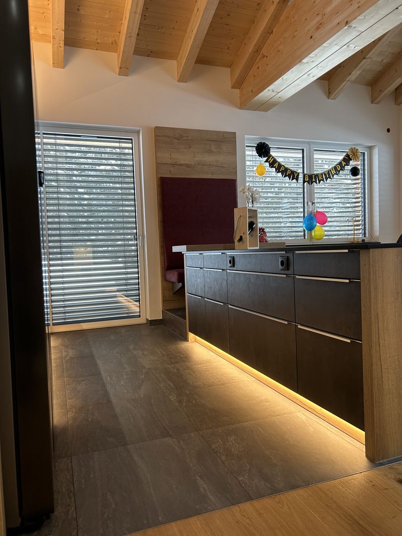 - Rundum LED-Beleuchtung (Sockel, Nischen, oberhalb der Küchenzeile)