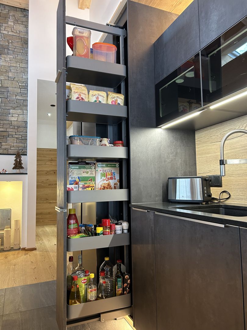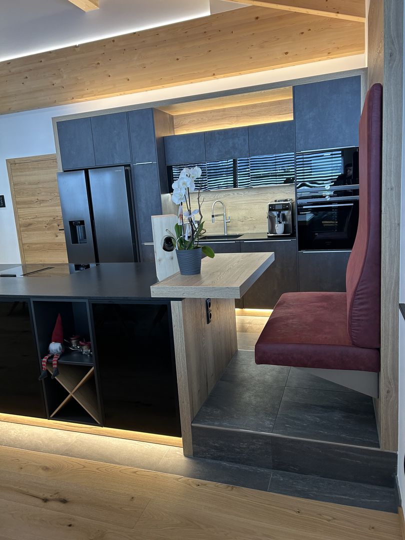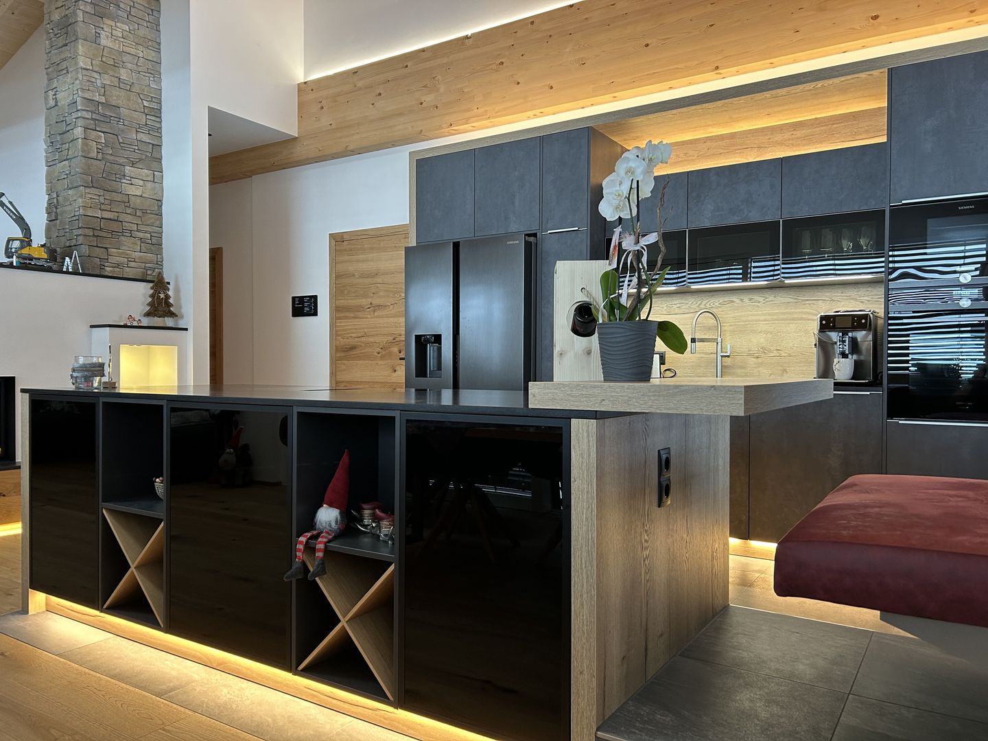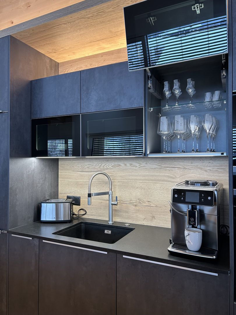 - Rundum LED-Beleuchtung (Sockel, Nischen, oberhalb der Küchenzeile)