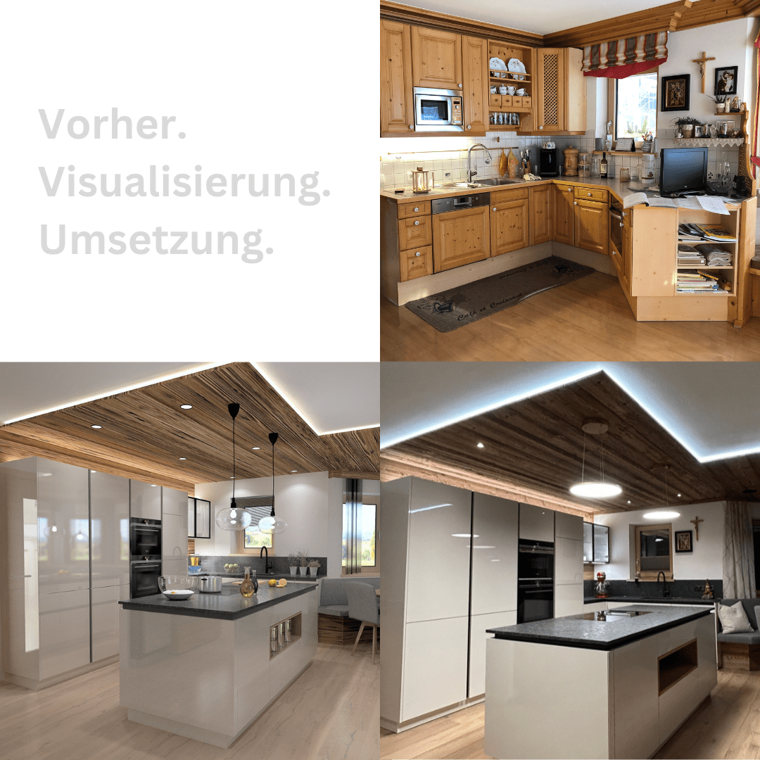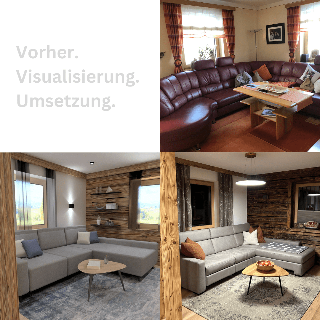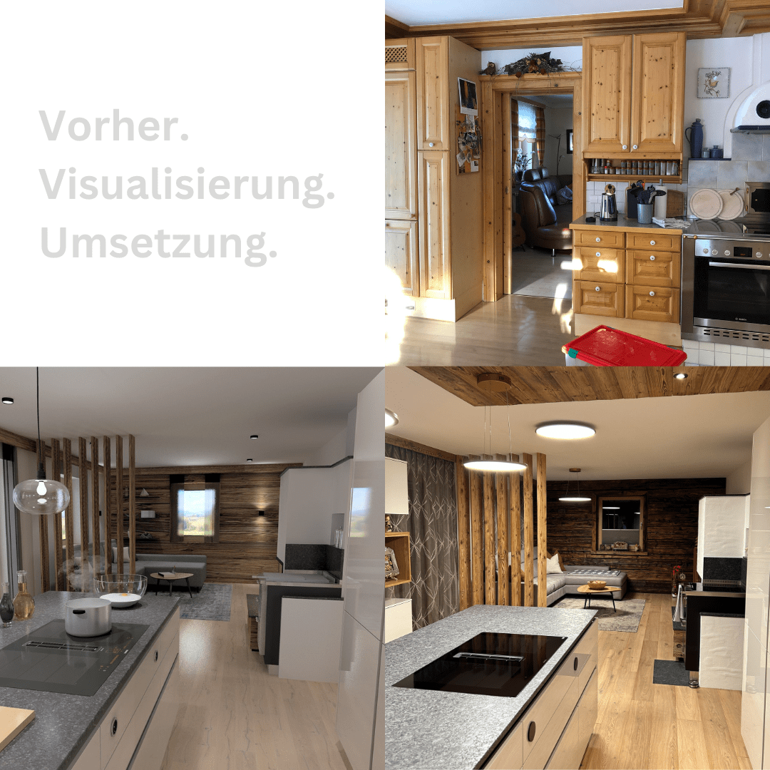 Dieses Mal haben wir zur besseren Veranschaulichung unserer Planungsmethode mit fotorealistischer Darstellung und VR-Brille eine schöne Gegenüberstellung "Vorher vs. Visualisierung vs. Nachher" vorbereitet.