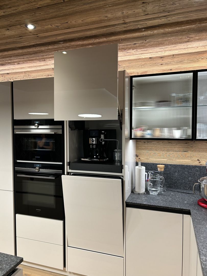 - Nische für Kaffeemaschine, mit Lifttüre elektrisch unterstützt, inkl. Auszugtablar um die Maschine zu platzieren