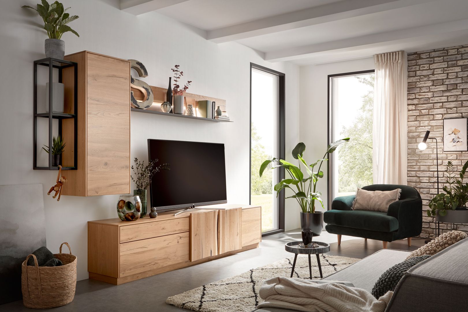 Im Wohnzimmer darf es auch ein bisschen mehr sein. Purismus ist das Eine, der topaktuelle Trend nach üppiger Deko das Andere. Es muss nicht immer schlicht sein und weniger ist auch nicht immer mehr. Deshalb halten auch wieder Samt, Seide und Brokat Einzug in unsere Wohnzimmer. Dazu gesellen sich warme Holztöne bei Regalen, Kommoden, Vitrinen und TV-Möbel.